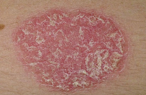 Bệnh có những mảng lớn màu đỏ trên da, mảng đó bị tróc vảy màu trắng bạc. Vảy xếp thành nhiều lớp , dễ bong tróc